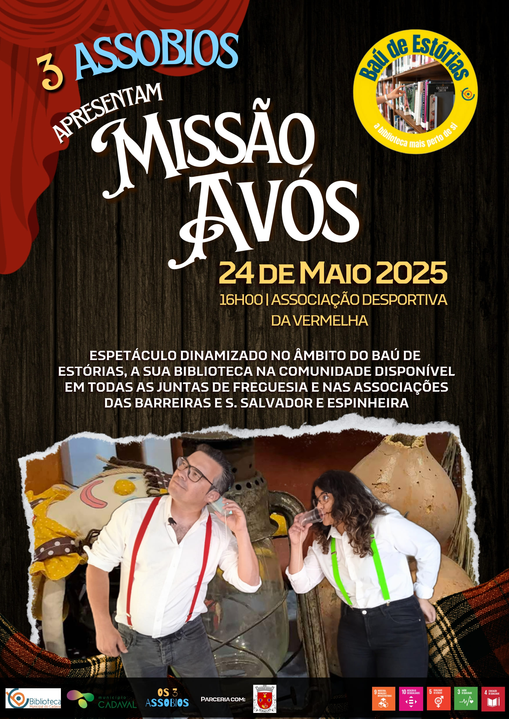 O projeto Baú de Estórias continua a promover a cultura e o entretenimento nas freguesias do concelho. No próximo sábado, 10 de maio, será a vez da Associação Cultural e Recreativa de S. Salvador e Espinheira receber o espetáculo "Missão Avós", uma performance divertida e cheia de significado da dupla "3 Assobios". O arranque do […]